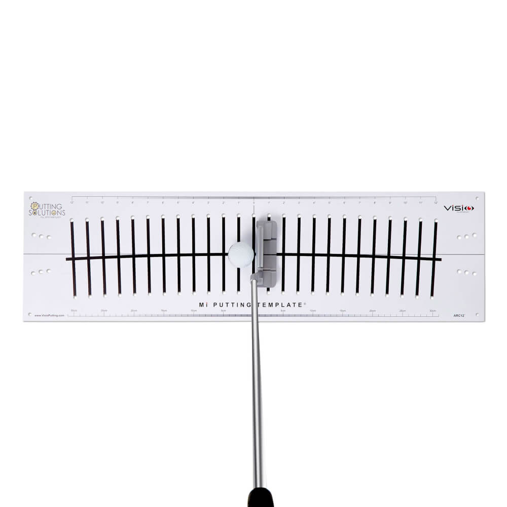 The arc of the stroke is aligned also so that the projected path at impact is perfectly square to the ball to target line, which is also referenced on the Mi Putting Template. A common preference for many golfers and teaching professionals is to ensure the putter face is square to the path of the stroke, particularly through the hitting area and that the path is pointing down the ball to target line at impact. The Mi Putting Template will give you a reference for club head rotation relative to each arc. Training with the Mi Putting Template will help you start a ball online with impact conditions that will also minimise excessive side spin and promote a better ball roll to help distance, control and accuracy.